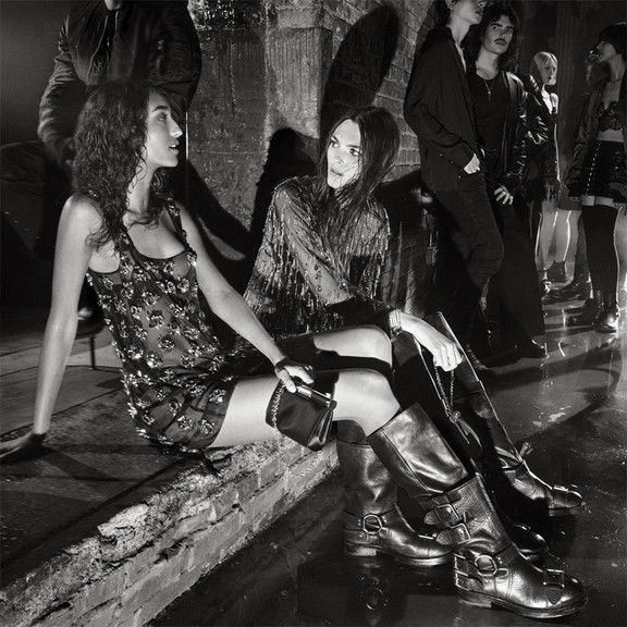 The club atmosphere—between flashes, spotlights, and shadows—merges with the hypnotic allure of Vittoria Ceretti and Mona Tougaard, protagonists of the new Fall/Winter 2025 Women’s ADV Campaign. Captured through Steven Meisel’s lens and under the creative direction of Baron & Baron, the two style icons move across the scene, living every emotion with natural ease.